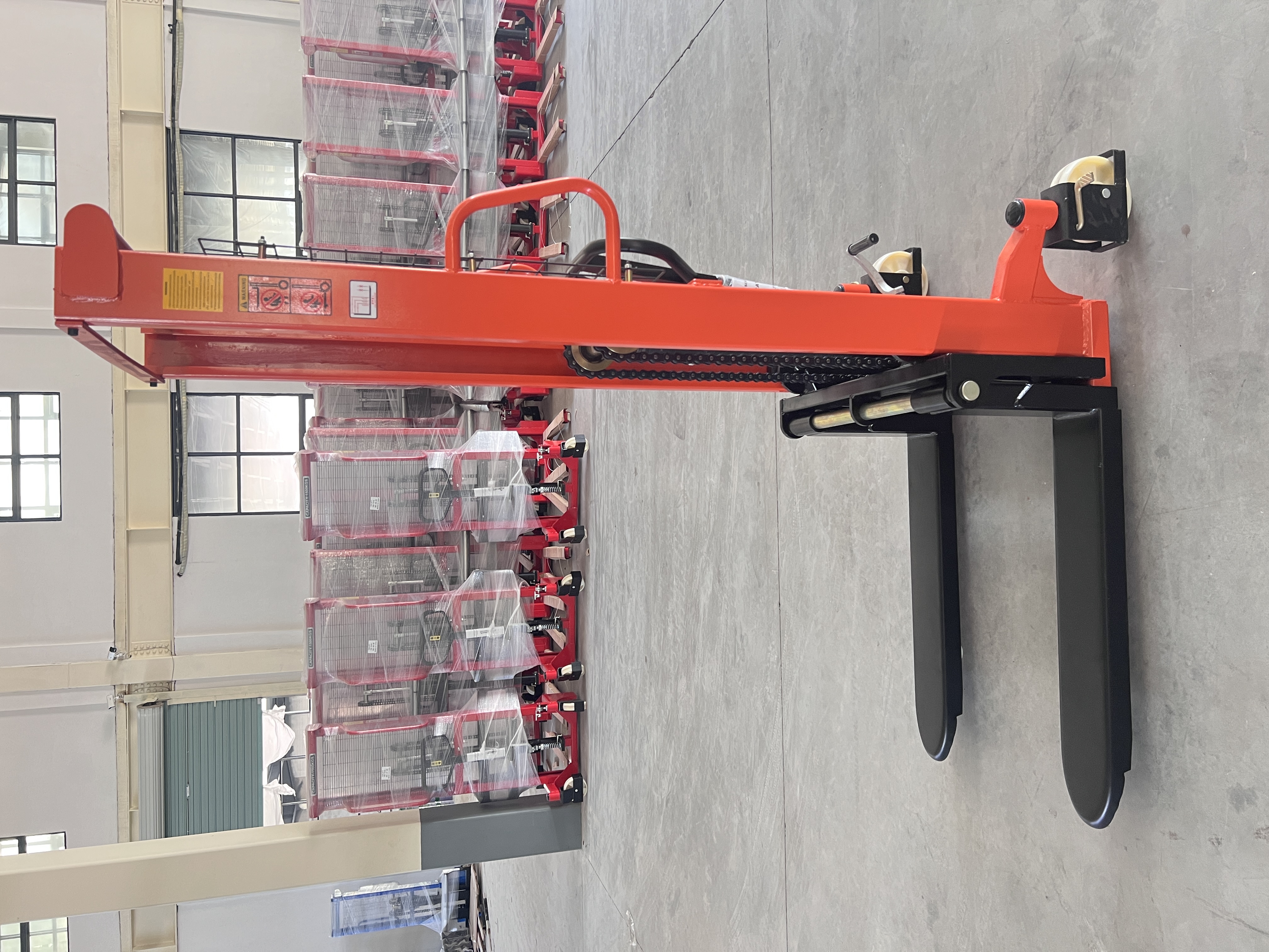 The H-Lift HMS Hydraulic Manual Stacker is a robust, manually operated lifting solution designed for moving and stacking palletized loads in warehouses and workshops. Operated via a hand pump or foot pedal, it eliminates the need for electric power, offering a cost-effective and reliable alternative for low-frequency lifting tasks. Its compact design allows for easy maneuvering in narrow aisles, while the adjustable forks ensure compatibility with various pallet sizes.