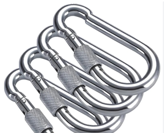- Spring-loaded snap gate with threaded locking sleeve to help prevent unintended gate opening.